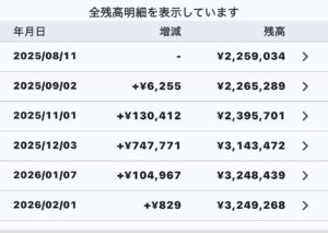 - 総資産: 3,249,268円(前月比+829円)