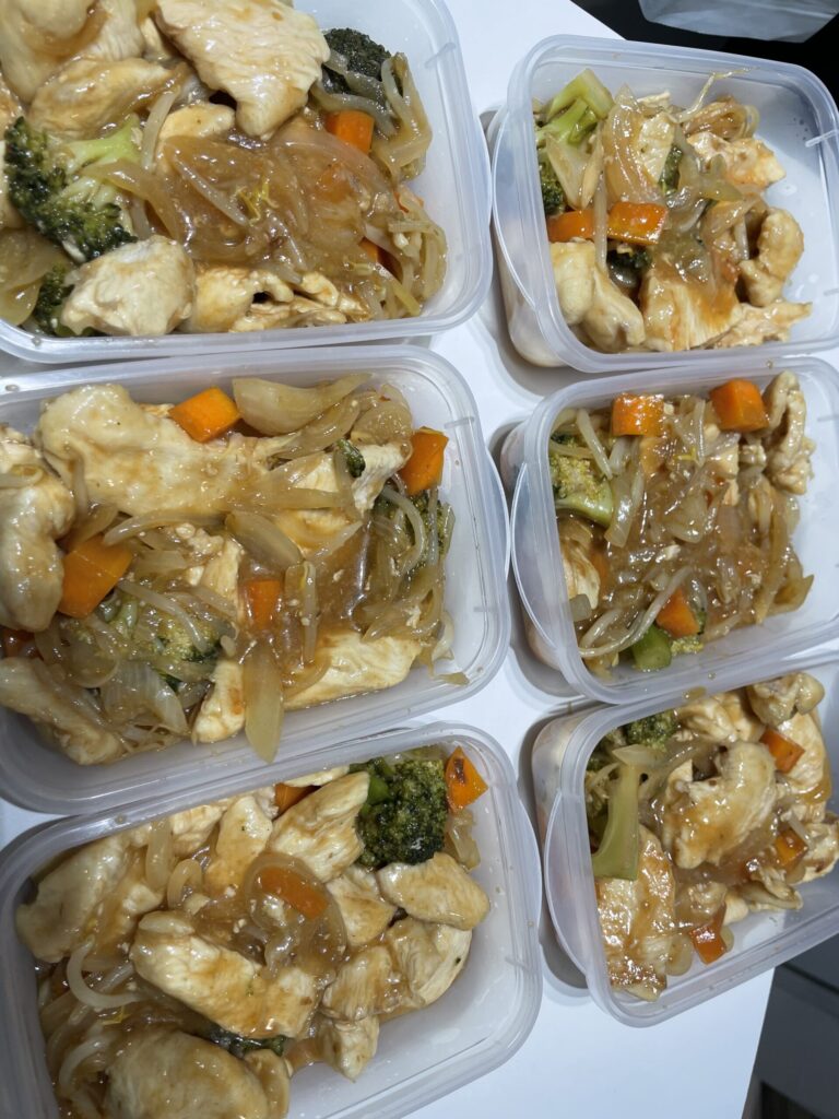 5食分ほどまとめて作り、ガラスの容器で凍らせています。